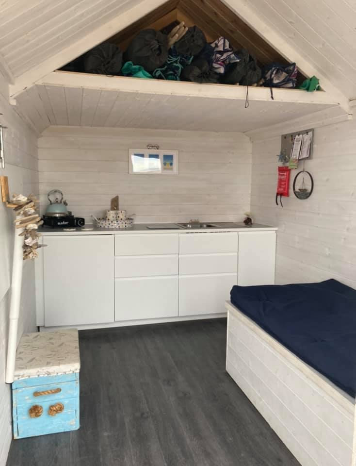 The beach hut has two zero gravity loungers, 6 camp style chairs (suitable to 26 stone), 2 kids chairs, a sun bed, a table, parasol, windbreaks, kettle, stove, mugs, cups, picnic wine cups, plates, bowls, cutlery, tea, coffee, hot chocolate, Cup-A-Soup, sugar, ketchup, vinegar, salt and milk sachets. You will also find some biscuits to enjoy with a cup of tea when you arrive. There are beach toys to use in the back box and body boards under the sofa area. Harry has a very handy stable door. If you shut the bottom but leave the top open, hey presto, you can use it as a child gate!